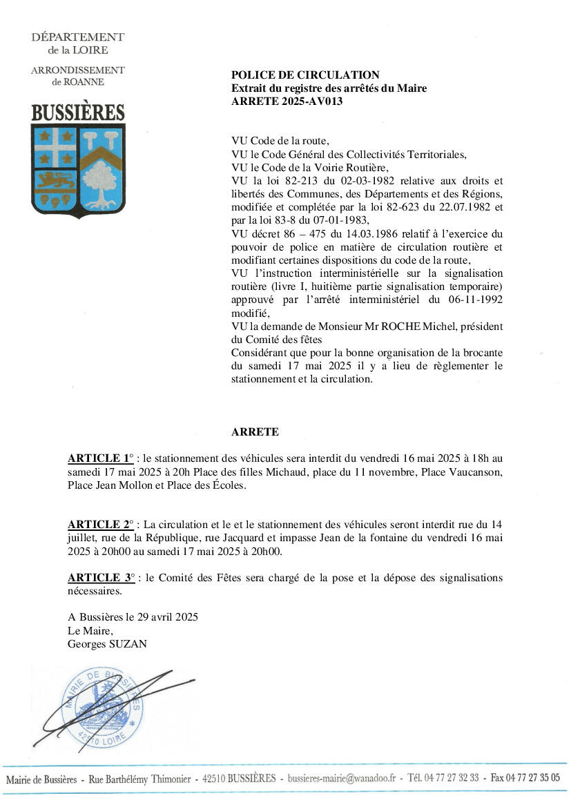 Your town hall / News / arrêté de circulation brocante du 17 mai 2025