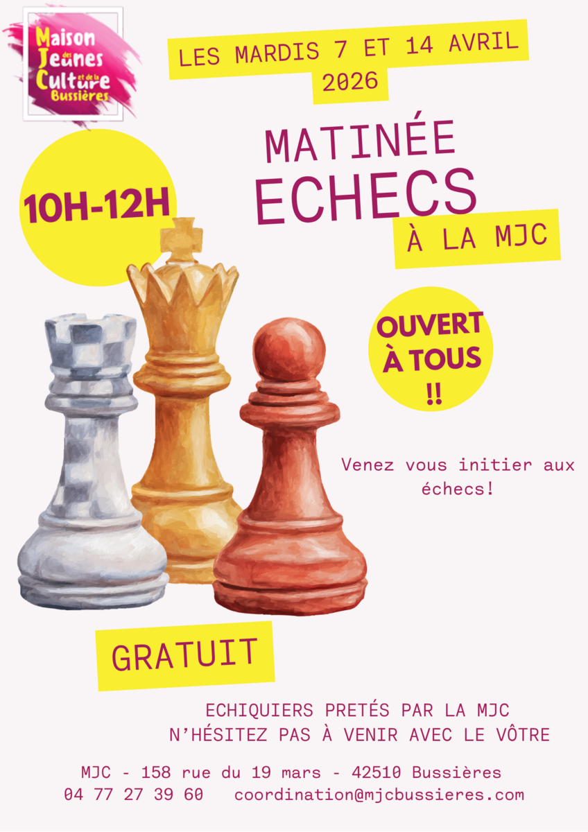 Your town hall / News / MJC Matinée Echecs les mardis 7 et 14 avril 2026