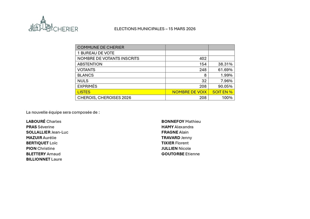 DIMANCHE 22 MARS- INSTALLATION DU NOUVEAU CONSEIL MUNICIPAL