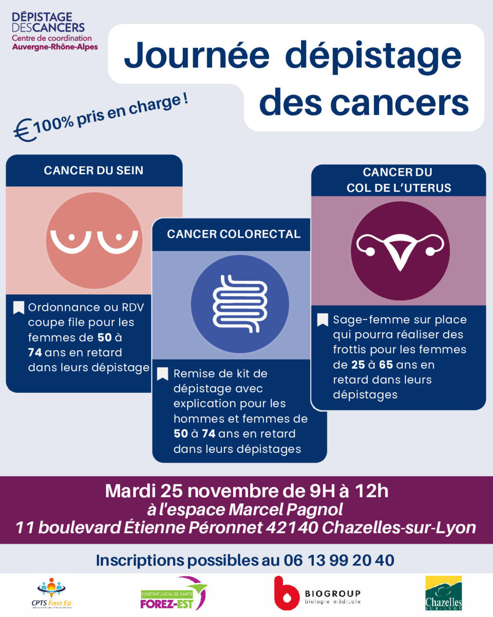 Journée dépistage des cancers mardi 25/11 à Chazelles/Lyon