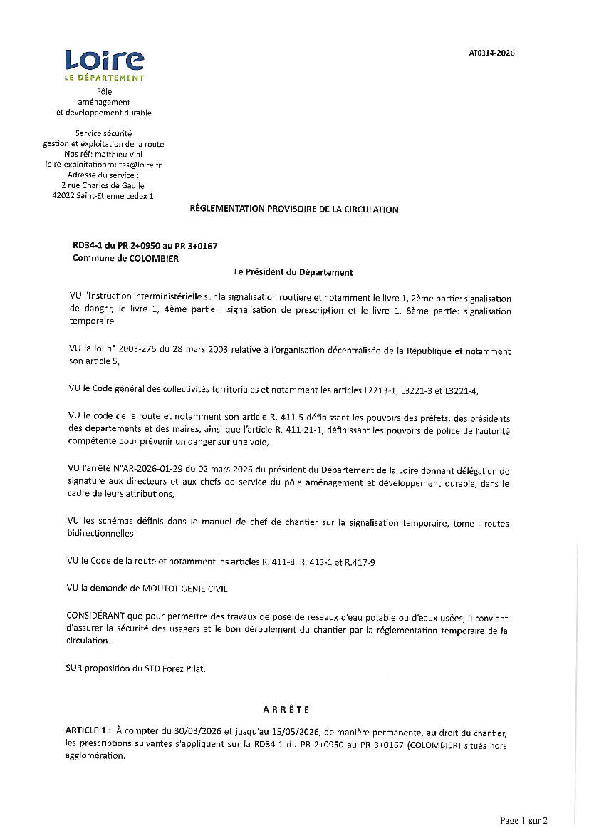 Your town hall / News / RÈGLEMENTATION PORVISOIRE DE LA CIRCULATION