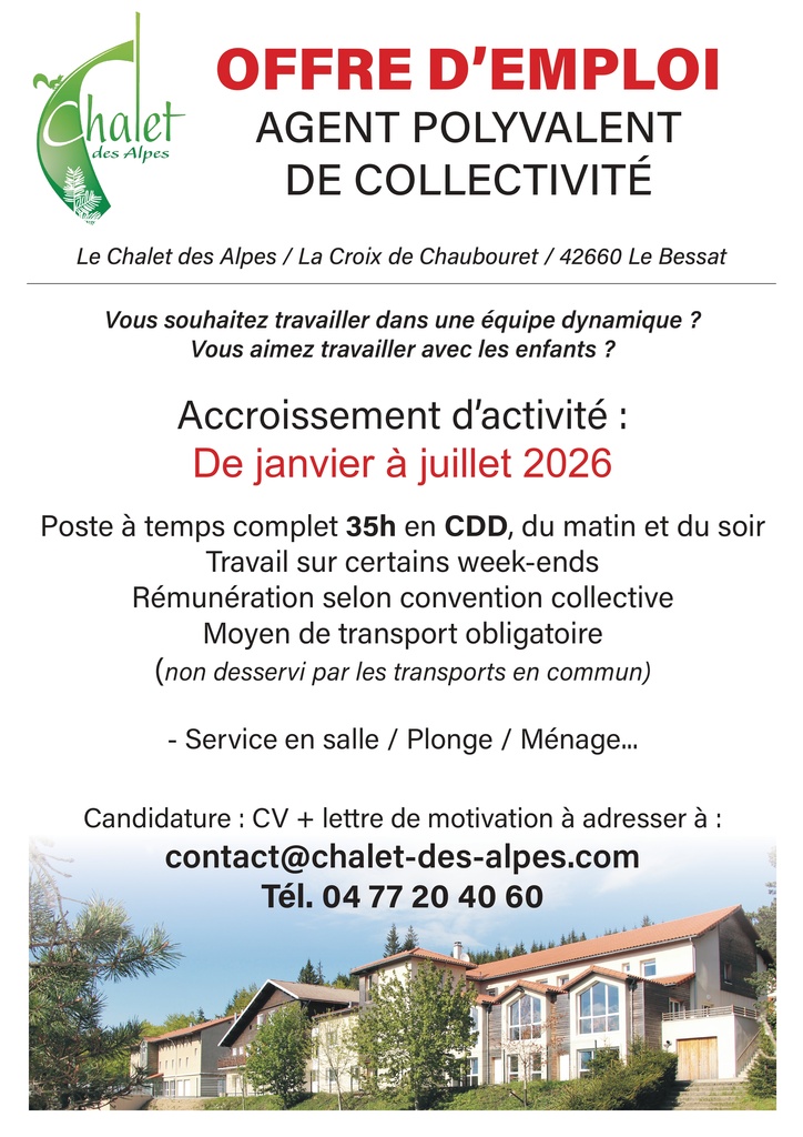 ⛰️ Le Chalet des Alpes recrute !