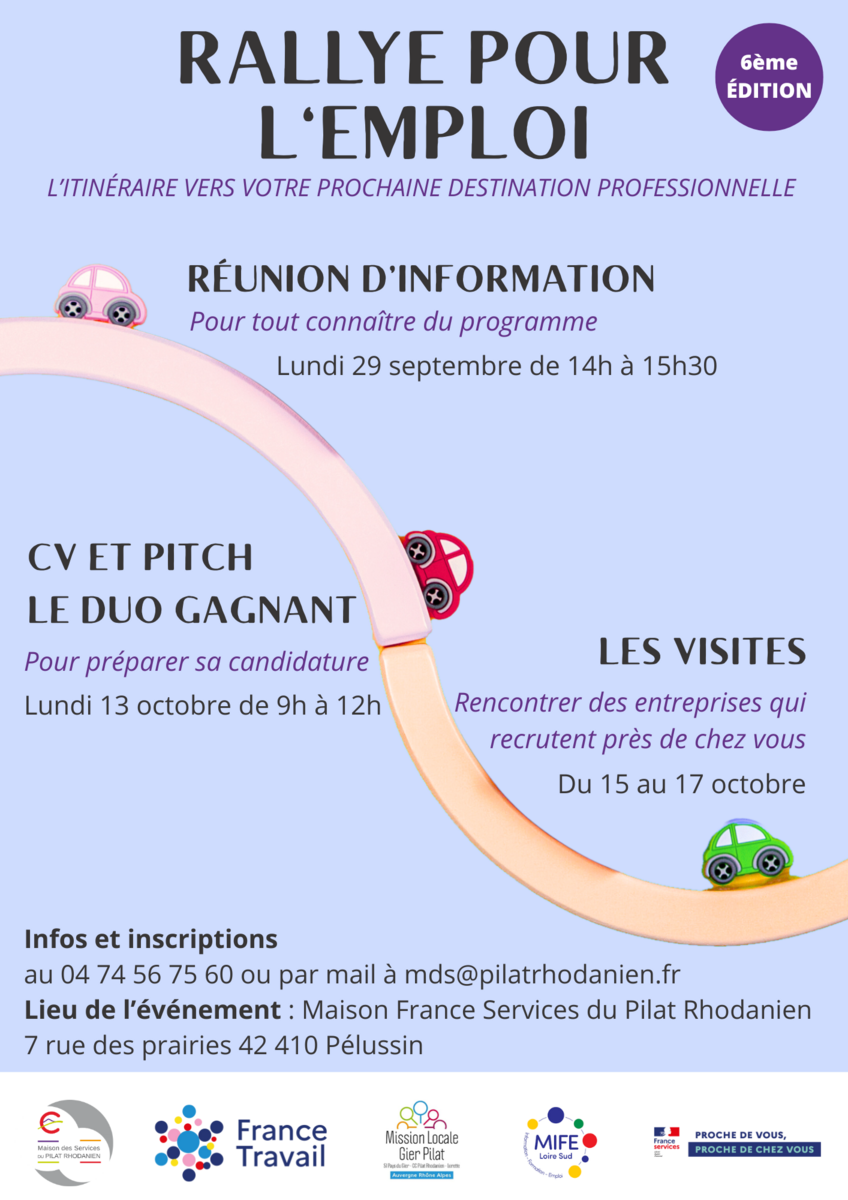 𝐋𝐞 𝐑𝐚𝐥𝐥𝐲𝐞 𝐩𝐨𝐮𝐫 𝐥’𝐞𝐦𝐩𝐥𝐨𝐢 est un événement en partenariat avec Mife Loire Sud Mission Locale Gier Pilat , France Travail Gier Pilat, Département de la Loire , Cap emploi.