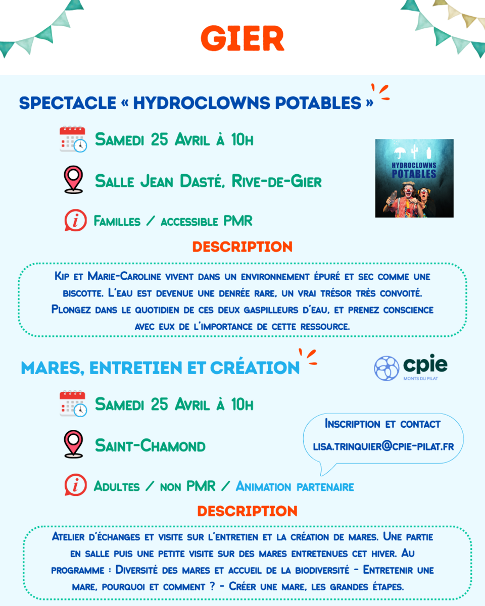 Fest'Eau Pilat : la suite du programme 4/18/26 Découvrez aujourd'hui le programme au bord du Gier et du Rhône. Programme complet sur HelloAsso.