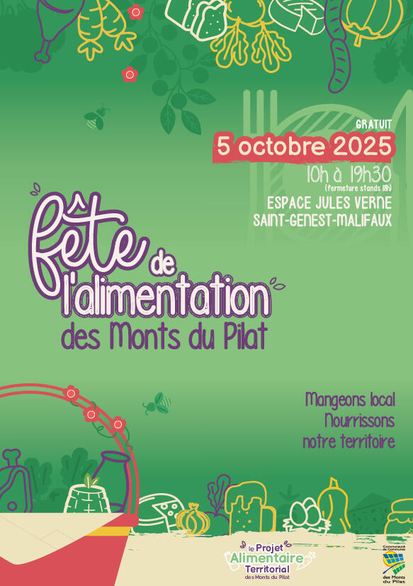 Rendez-vous dimanche 5 octobre 2025 à l’Espace Jules Verne à Saint-Genest-Malifaux pour une journée gourmande et conviviale autour des saveurs locales et du bien-manger !