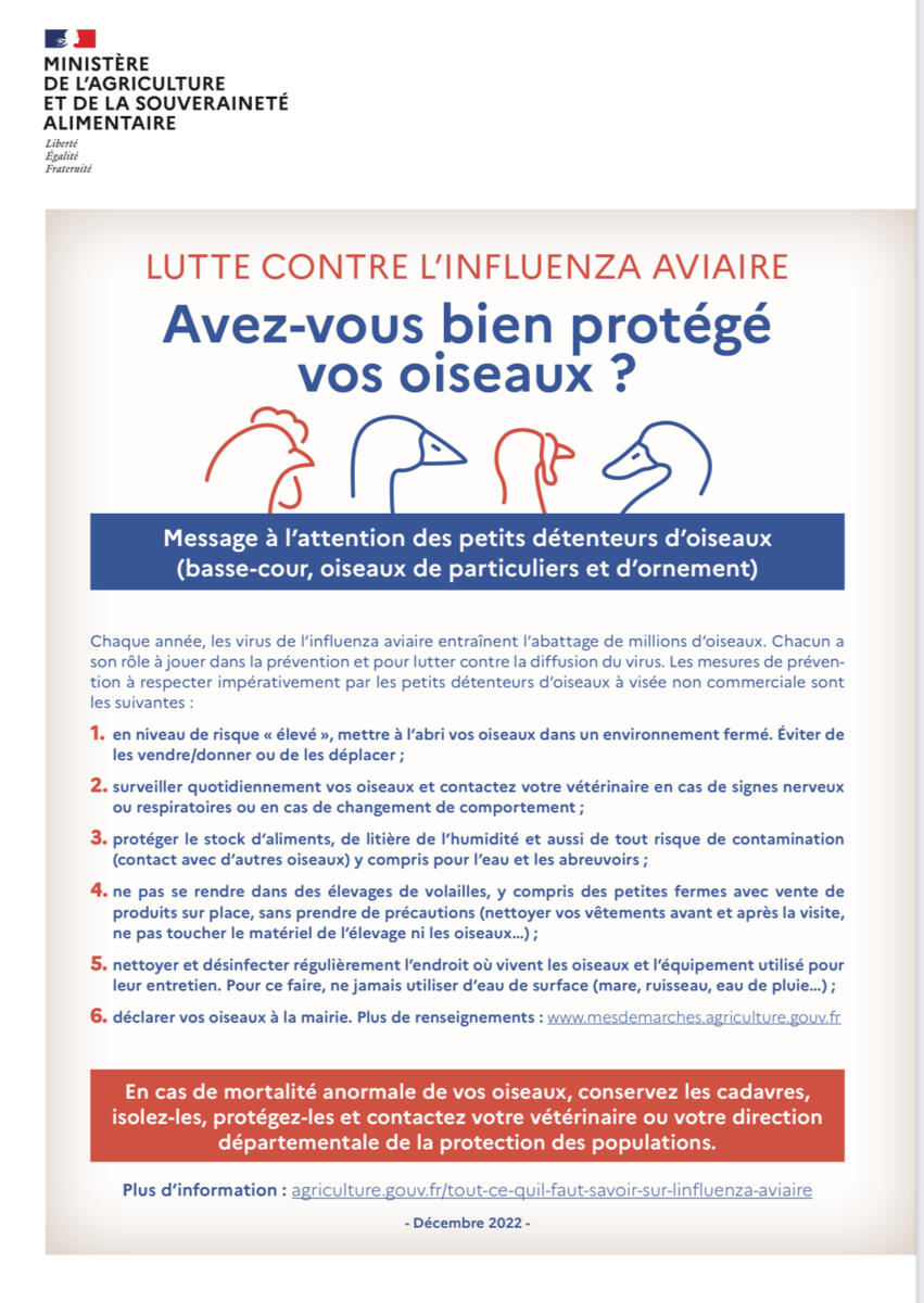 ⚠️ INFORMATION IMPORTANTE — GRIPPE AVIAIRE ⚠️