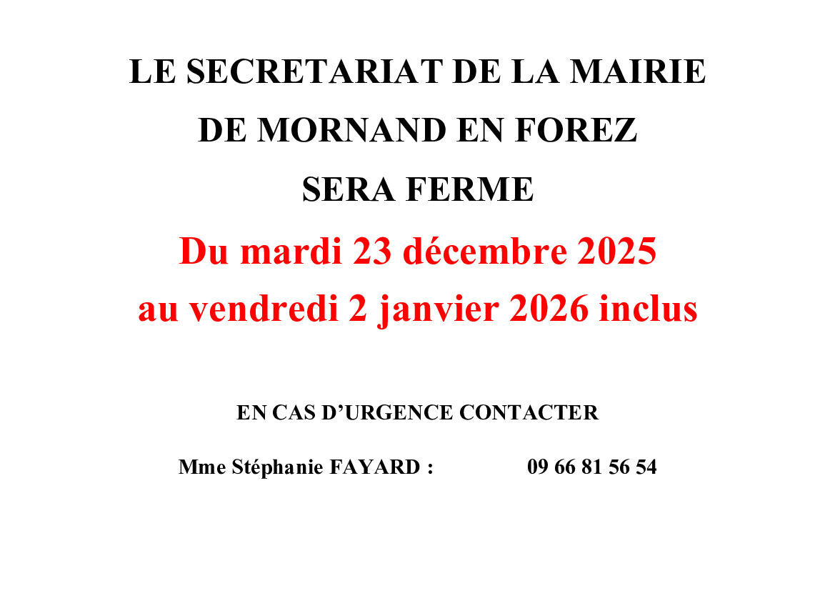 FERMETURE EXCEPTIONNELLE DU SECRETARIAT DE MAIRIE