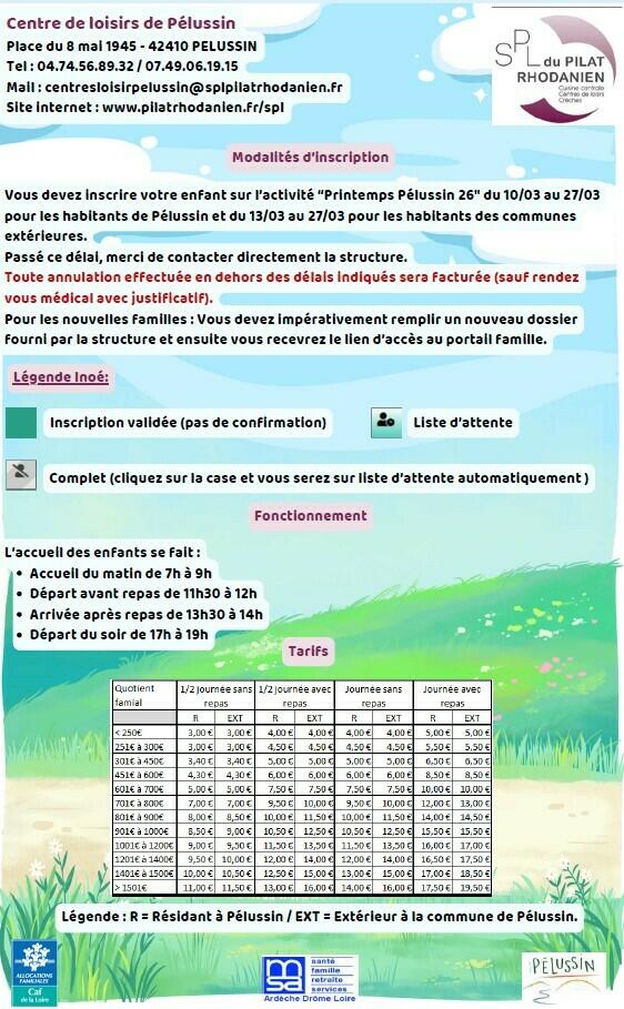 Contact & réservations : 04 74 56 89 32 ou 07 49 06 19 15 / centresloisirpelussin@splpilatrhodanien.fr