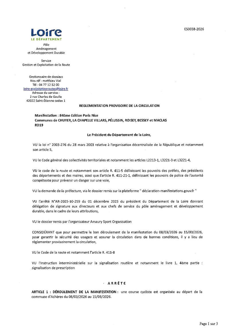 📌 Les routes communales et dĂ©partementales concernĂ©es sont listĂ©es dans les arrĂȘtĂ©s du Maire et du DĂ©partement.