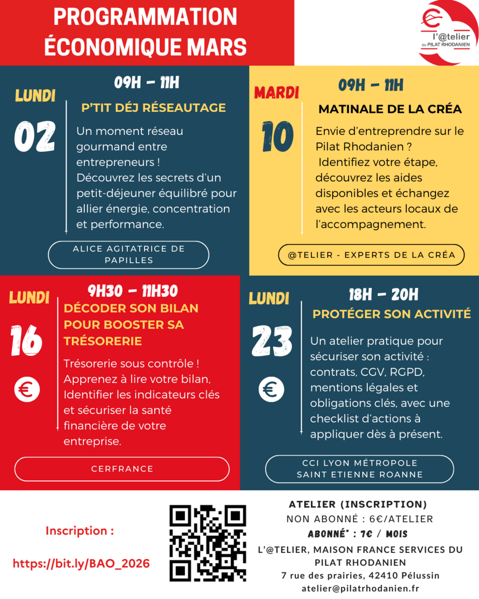 Your town hall / Agenda / Programmation économique de novembre à l’@telier du Pilat rhodanien