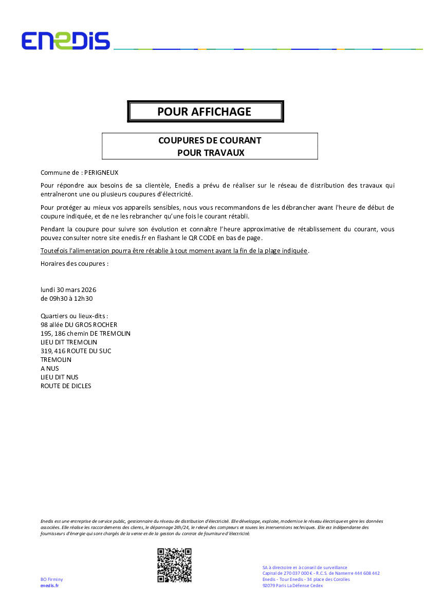 Coupures de courant pour travaux
