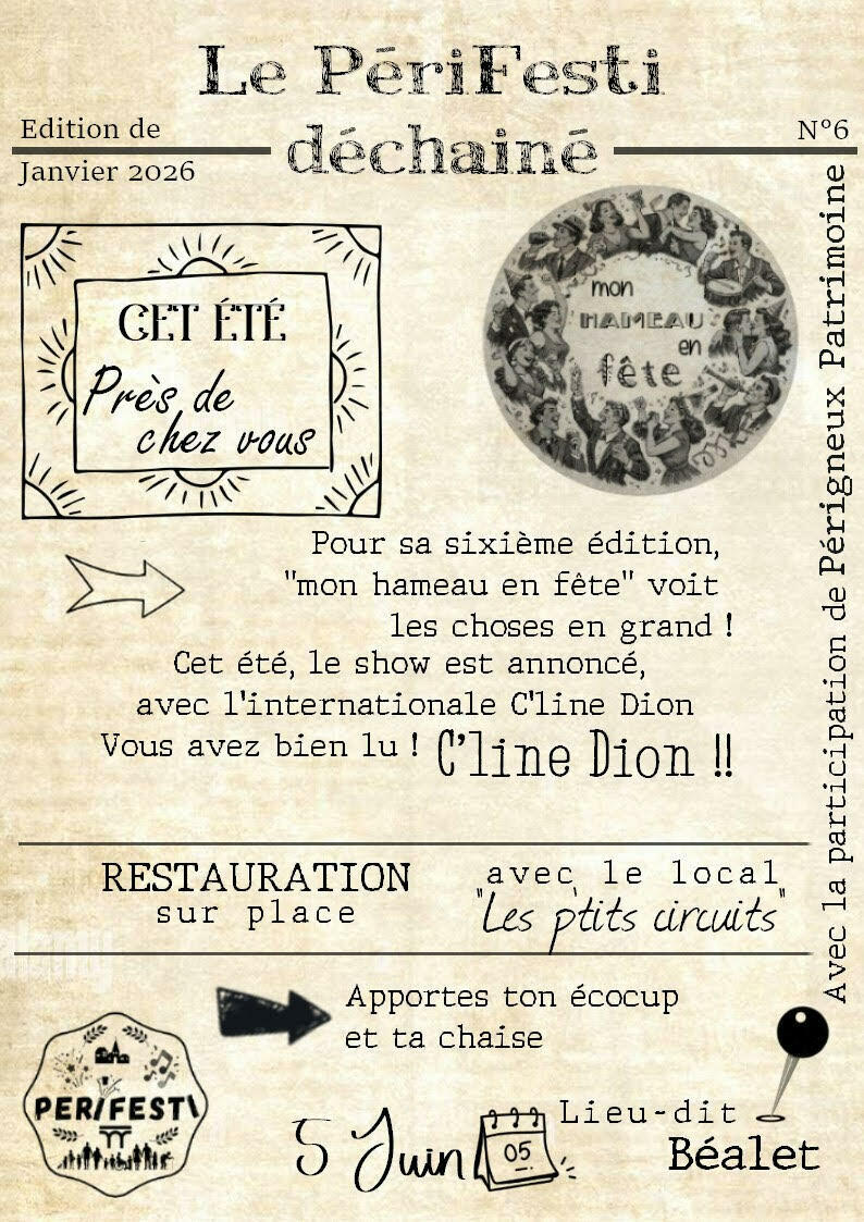 Le 5 juin, au hameau de Béalet, Perifesti voit les choses en grand avec le show C’line Dion (oui, oui ! 😄).