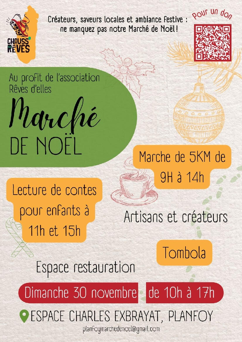 Le 30 novembre, dimanche, un marché de Noël sera organisé de 10h à 17h, avec en parallèle une marche de 5 km qui aura lieu de 9h à 14h.