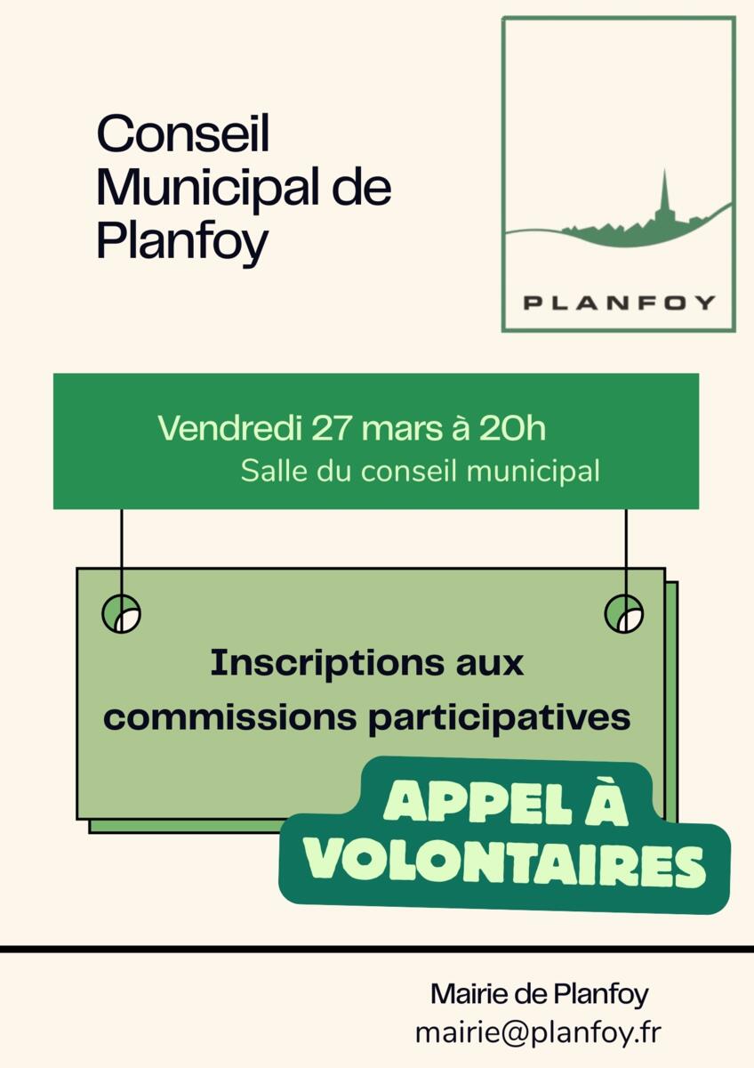 Conseil Municipal De Planfoy 24/03/2026 Inscriptions aux commissions participatives Appel à Volontaires