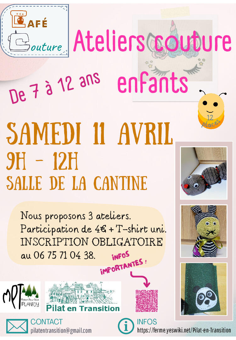 Mpt - Café Couture 7 À 12 Ans - Samedi 11 Avril 2026 01/04/2026 Café couture le samedi 11 avril 2026 de 9h00 à 12h00