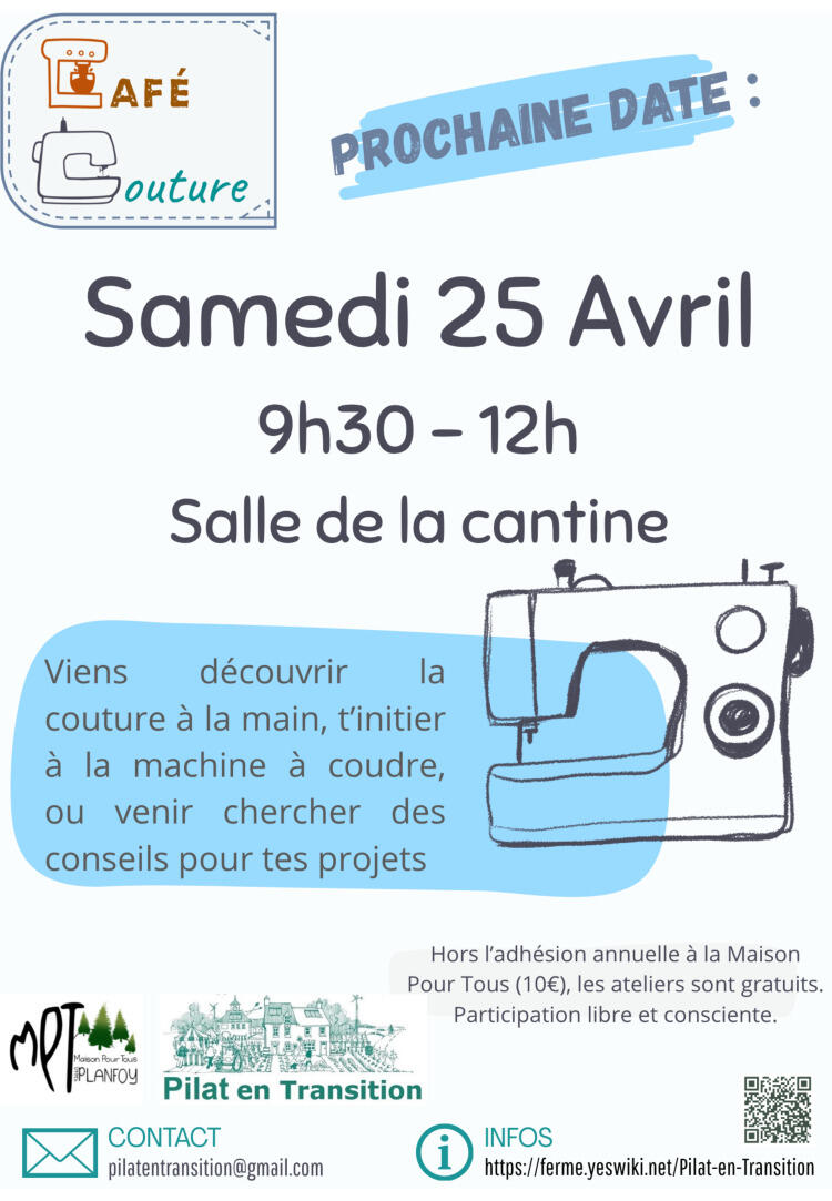 Mpt - Café Couture - Samedi 25 Avril 2026 22/04/2026 Café couture le samedi 25 avril 2026 de 9h30 à 12h00