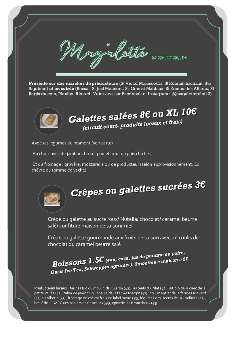 Présence Mag'alette Samedi 28 Mars 23/03/2026 Mag'alette sera présente ce samedi 28 mars dès 19h00 Pensez à commander au 07 82 77 86 45