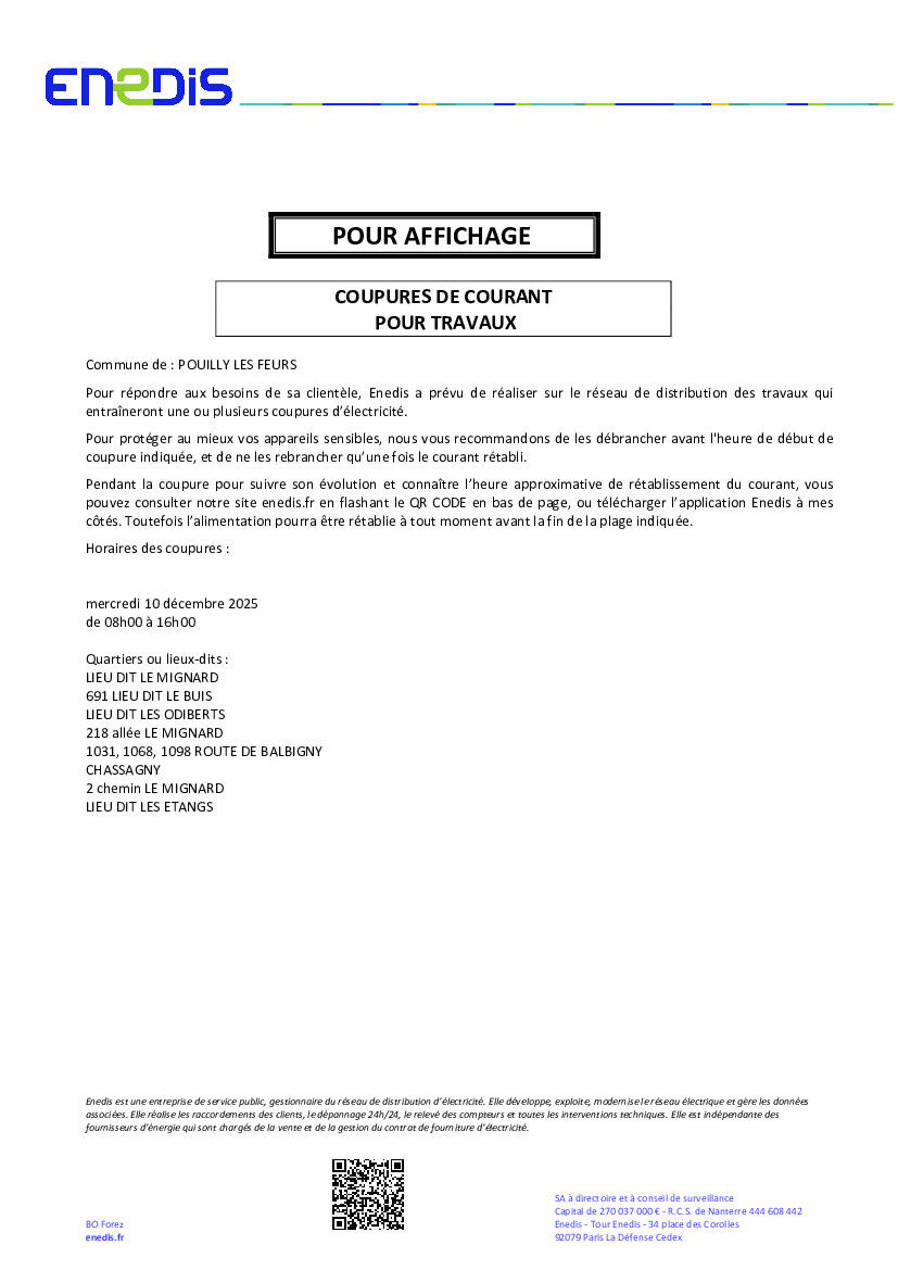 Coupure d'électricité - 10 décembre 2025