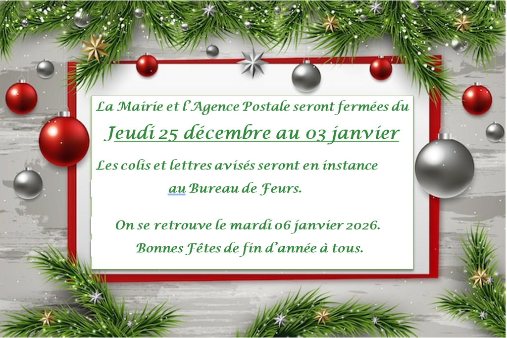 Fermeture de la Mairie et de l'Agence Postale 🎄🎅🏽🎁