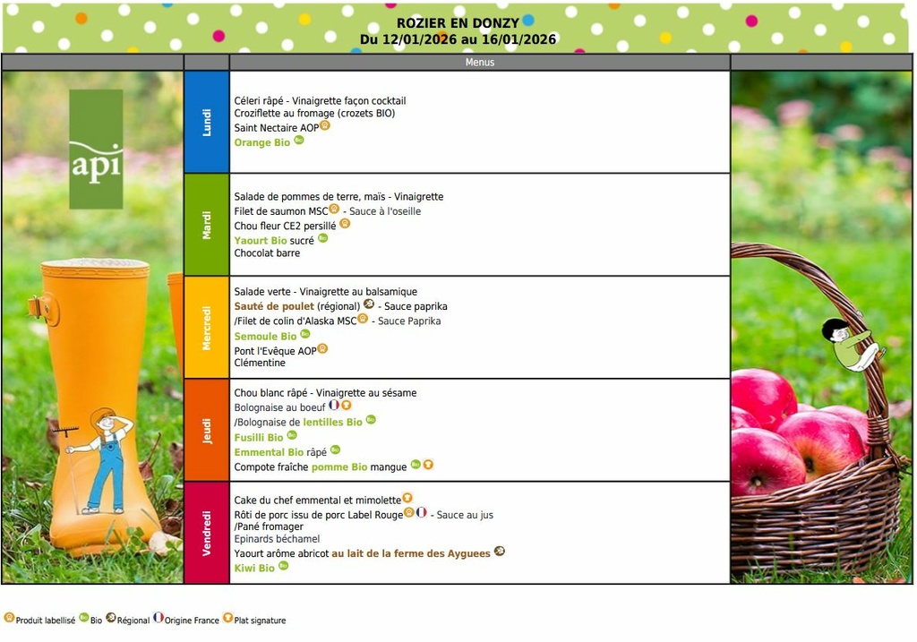 Voici les menus pour la semaine du 12/01 au 16/01/26: