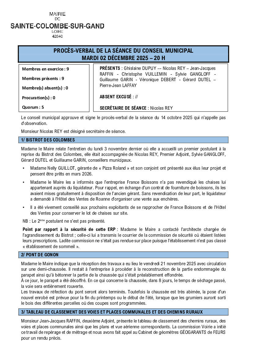 PROCÈS-VERBAL CONSEIL MUNICIPAL DU 02 DÉCEMBRE 2025