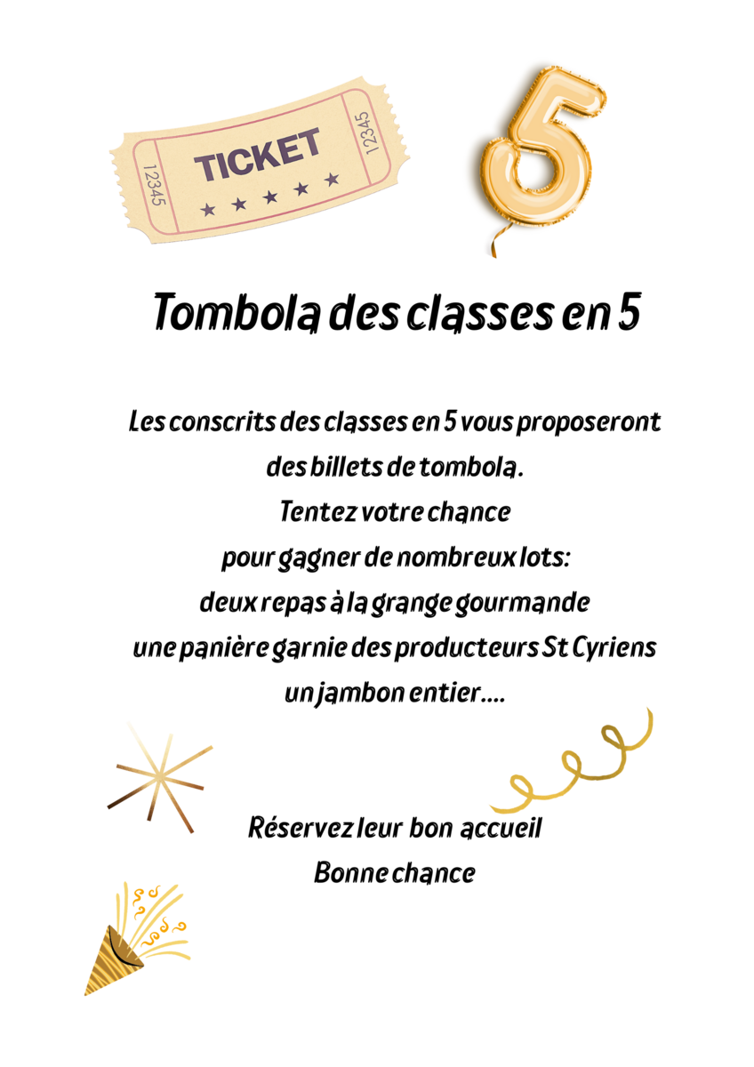 Classe en 5 4/8/25 Noter sur vos agendas Fête des classes en 5 de Saint Cyr de Valorges le: Samedi 11 octobre 2025