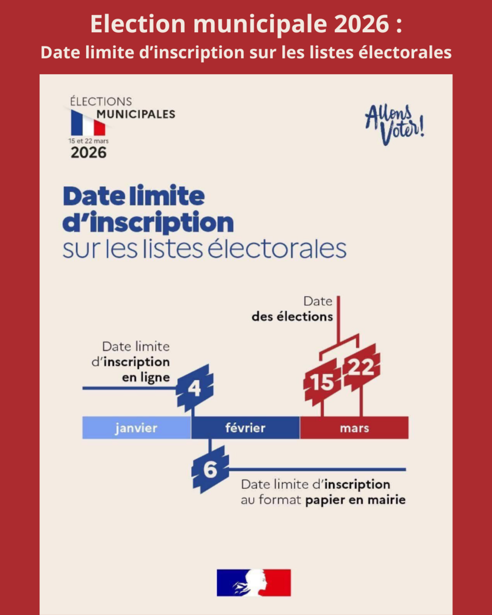 Elections municipales : Inscription listes électorales 1/14/26 Dates limites d'inscription sur les listes : Source : Mairie de Violay