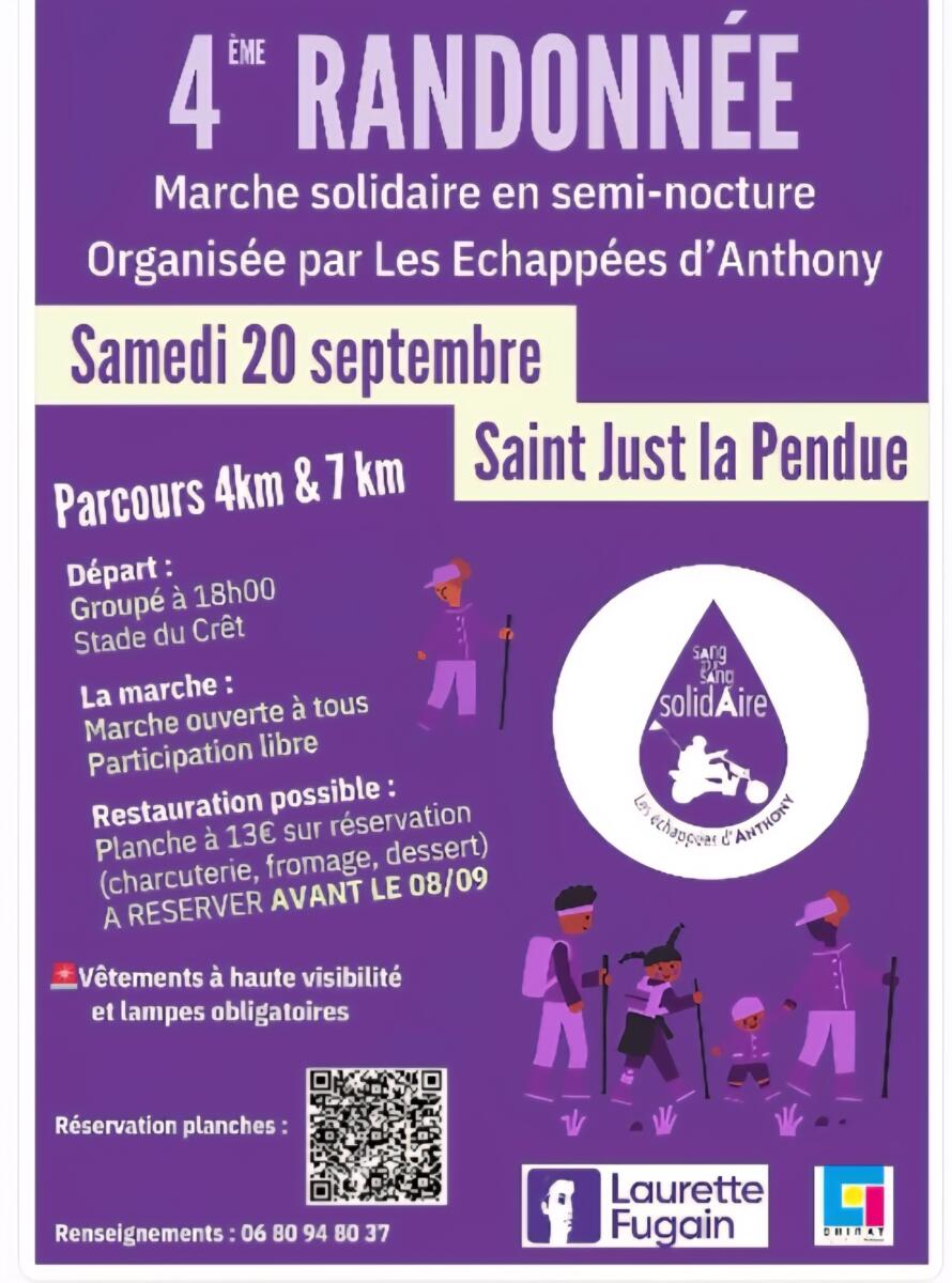🌙🥾 Randonnée Solidaire Semi-Nocturne – St Just la pendue 🥾🌙