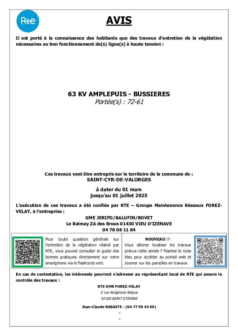 Your town hall / News / Travaux d’élagage et abattage sur Saint-Cyr-de-Valorges (RTE