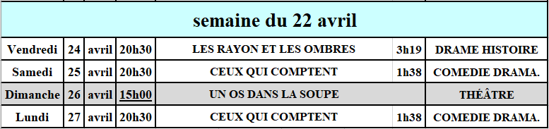 Cette semaine au Cinéma ...