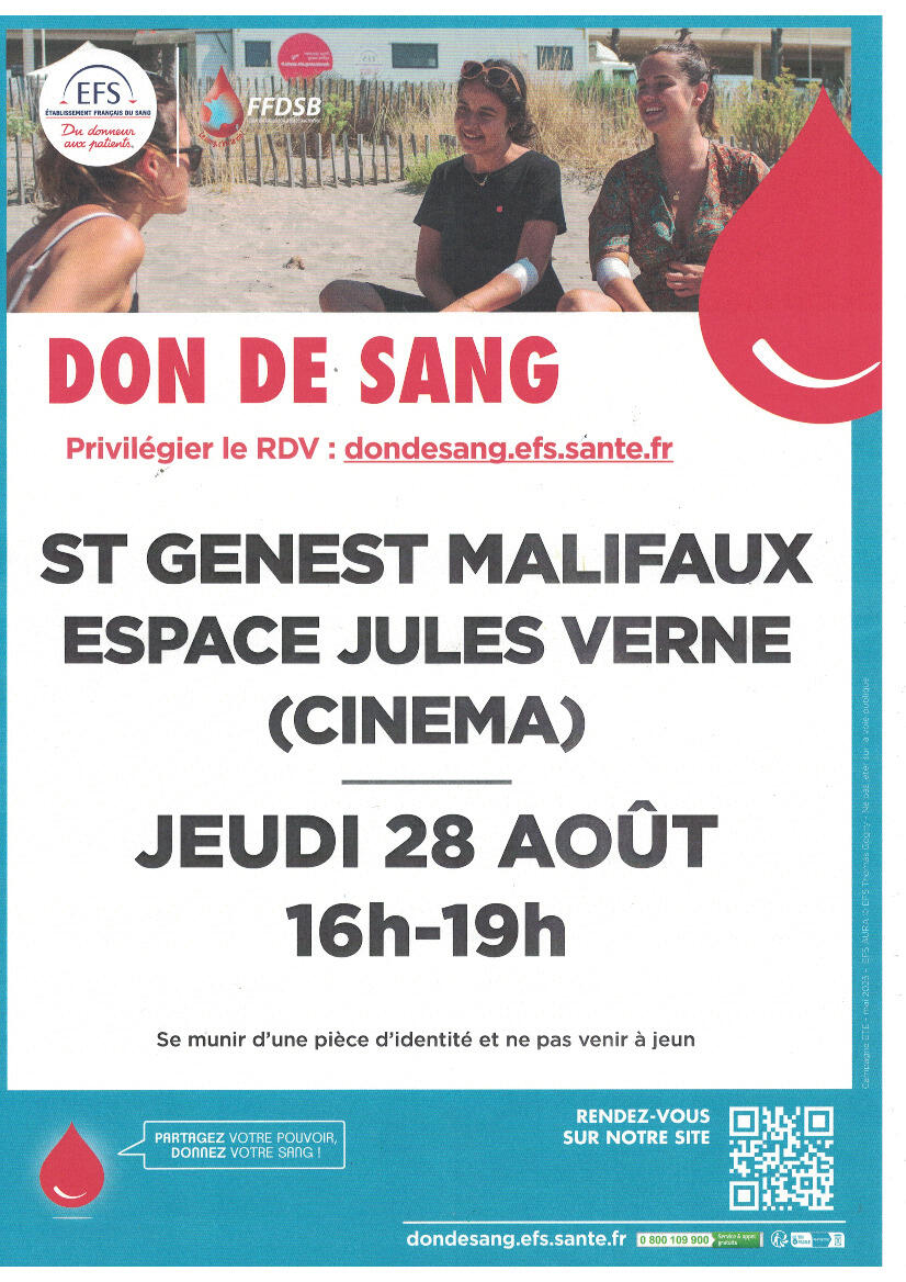 Don du sang - Espace Jules VERNE - Jeudi 28 août 16h/19h