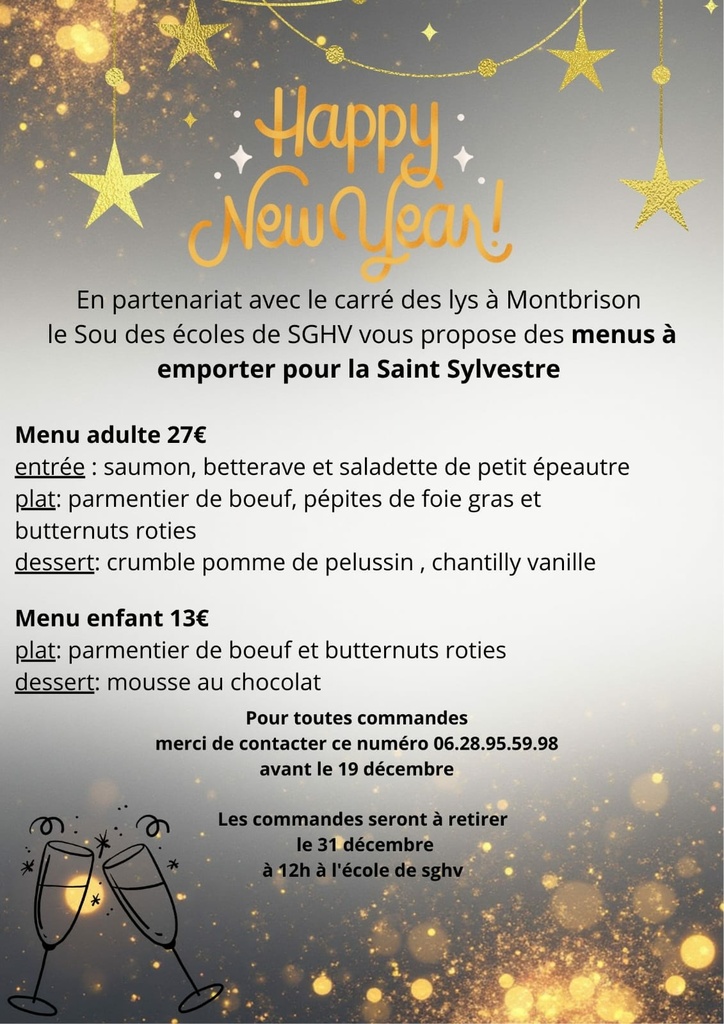 Your town hall / News / Sou des écoles "Menus à emporter St Sylvestre"