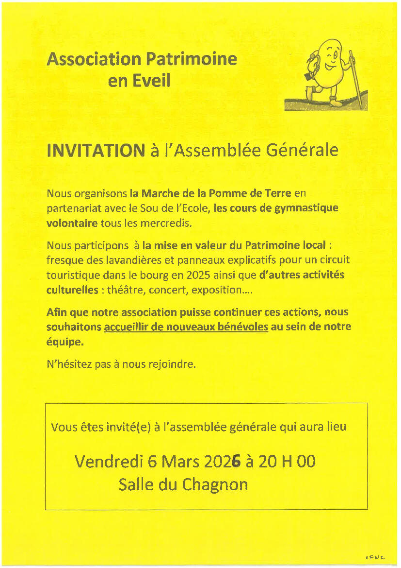 Assemblée générale Patrimoine en Eveil 6 mars 2026 à 20h00