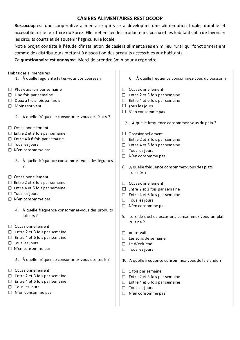 SONDAGE PROJET DE CASIERS ALIMENTAIRES RESTO'COOP