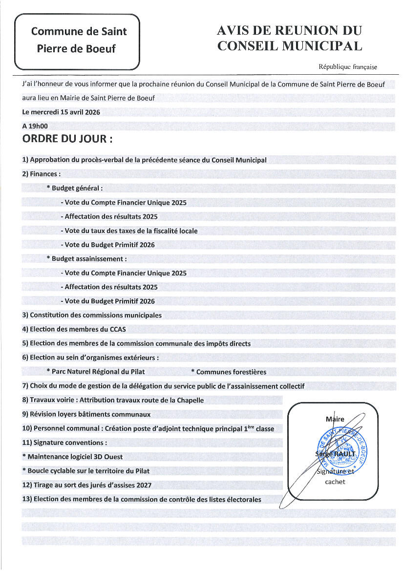 Your town hall / News / Avis de réunion du Conseil Municipal