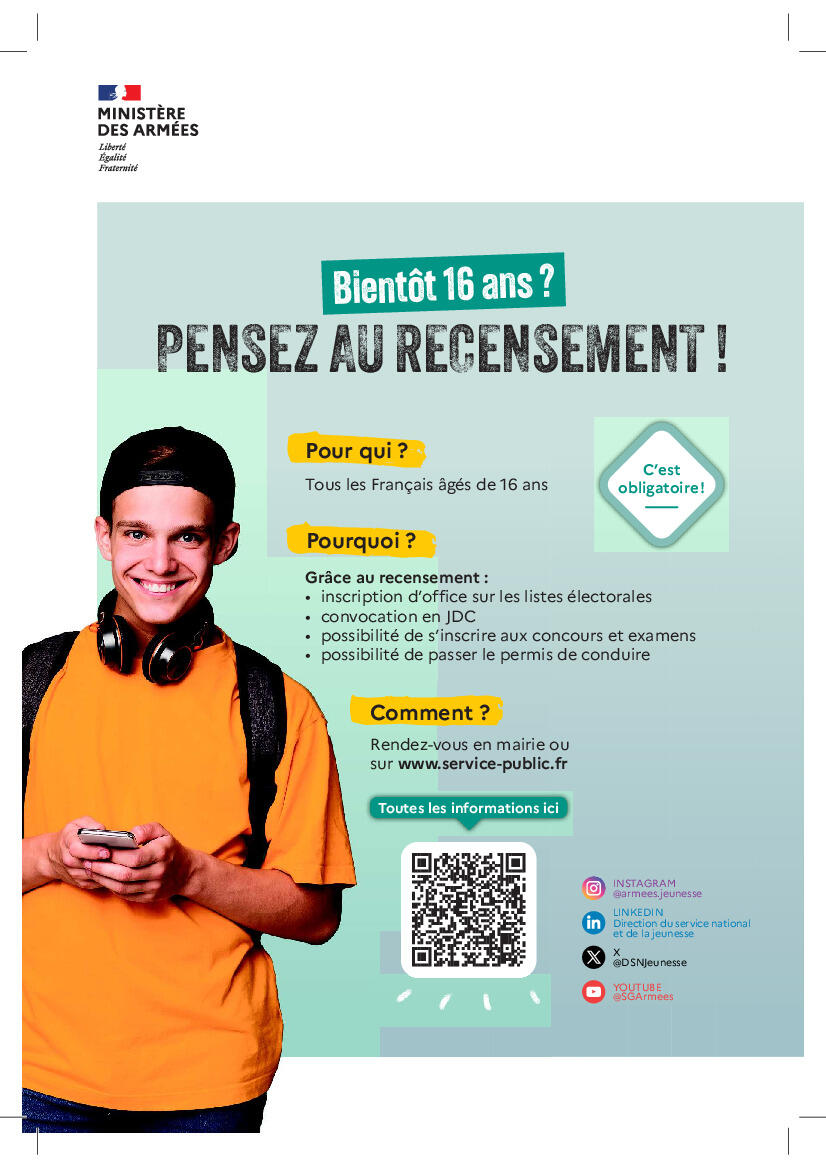 Bientôt 16 ans ? Pensez au recensement !
