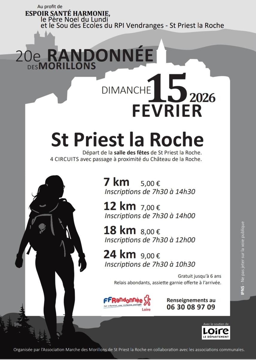 Pour sa 20ème édition, l'association La marche des morillons vous accueille à Saint-Priest-la-Roche avec ses 4 circuits et un passage à proximité du Château de la Roche