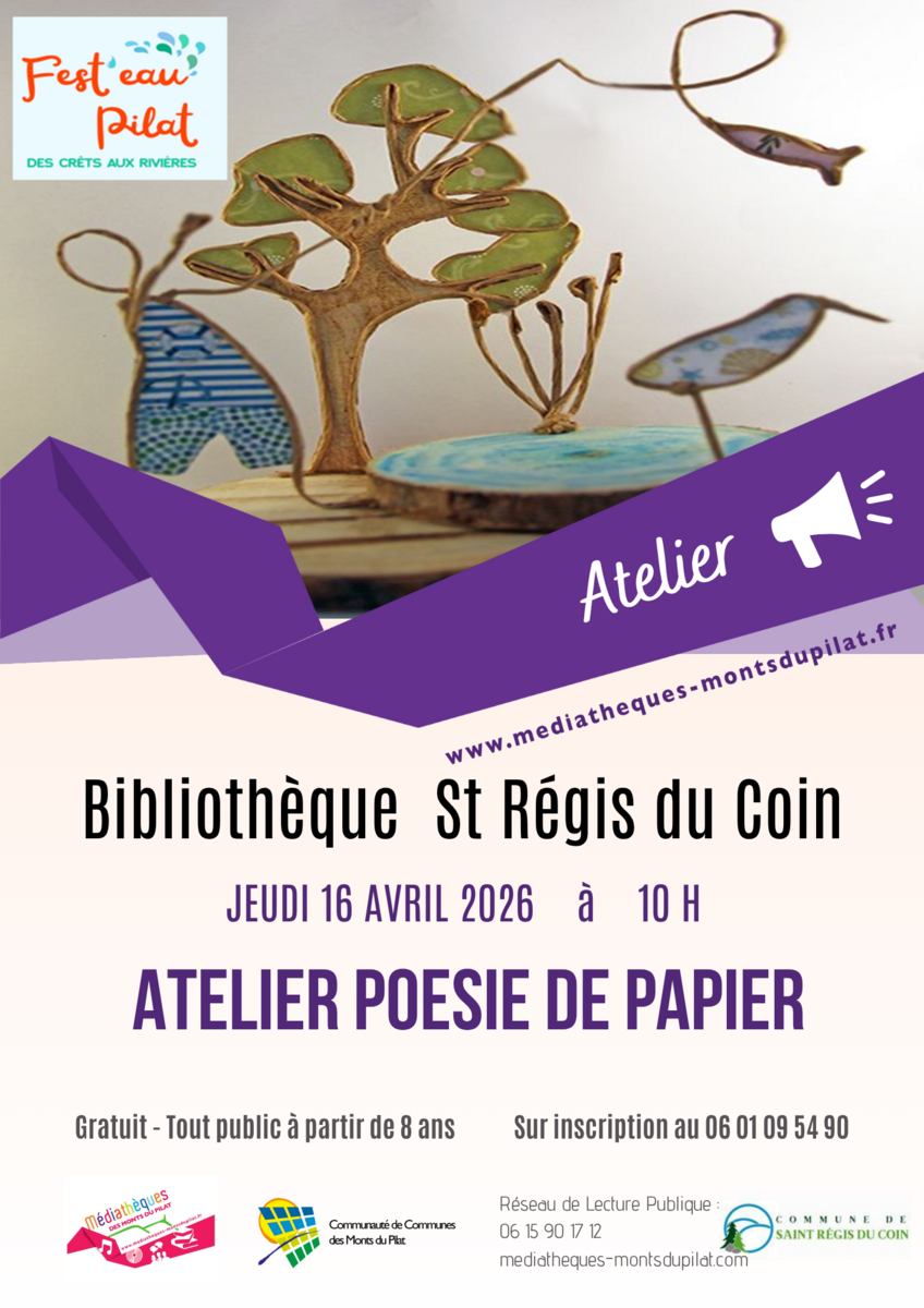Dans le cadre du festival Fest'eau, la bibliothèque de St Régis propose un atelier ouvert à tous le jeudi 16 avril à 10h.