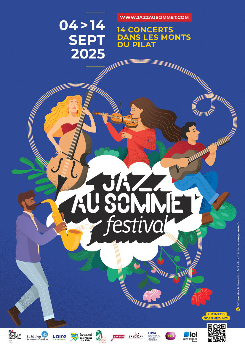 Venez nous retrouver du 4 au 14 septembre pour la 19 ème édition de Jazz au sommet au cœur du massif du Pilat avec au programme 14 concerts jazz, choisissez votre itinéraire, nous allons vous accompagner sur les mille et une routes qui conduisent au jazz.