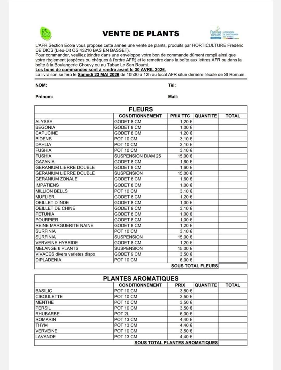L' AFR section jeunesse organise une vente de plants ! Fleurs, légumes et aromatiques, il y a en pour tous les goûts !