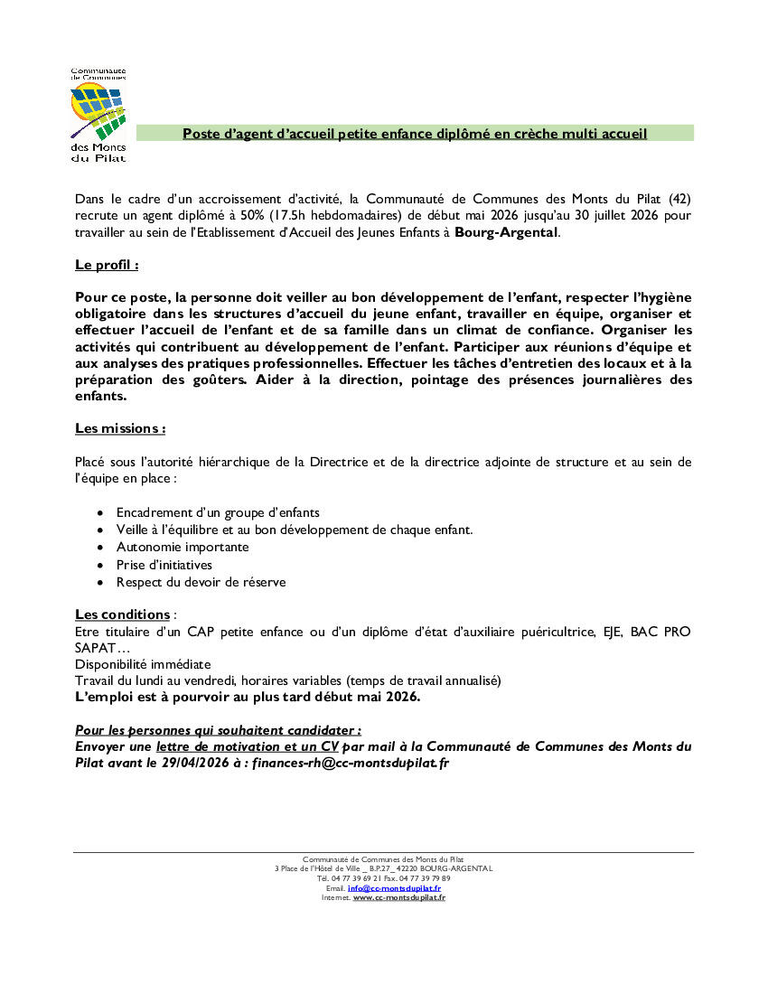 OFFRE D'EMPLOI : BOURG-ARGENTAL