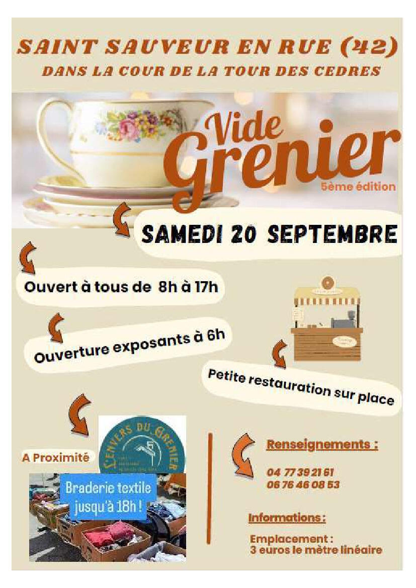 La tour des Cèdres organise son 5ème vide grenier le samedi 20 septembre 2025.