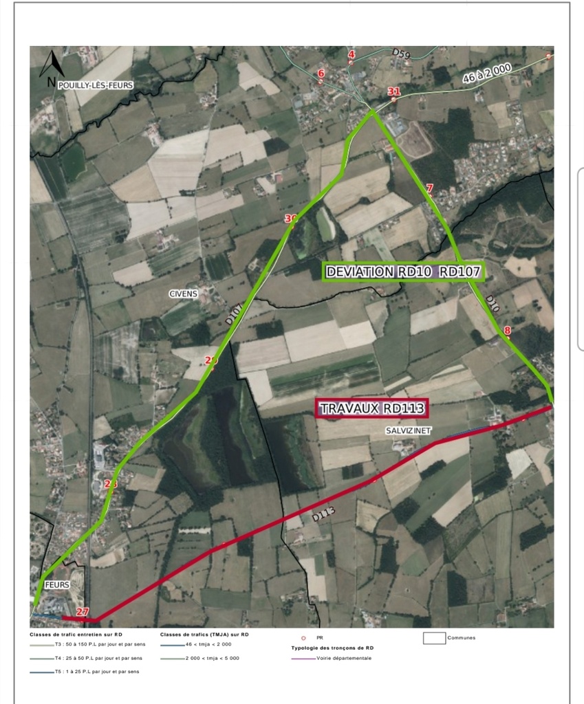 Du 5 au 19 décembre la route départementale 113 en direction de Feurs sera fermée à la circulation, le département réalise des travaux de curage des fossés. Une déviation sera mise en place, la circulation sera autorisée les week-ends.
