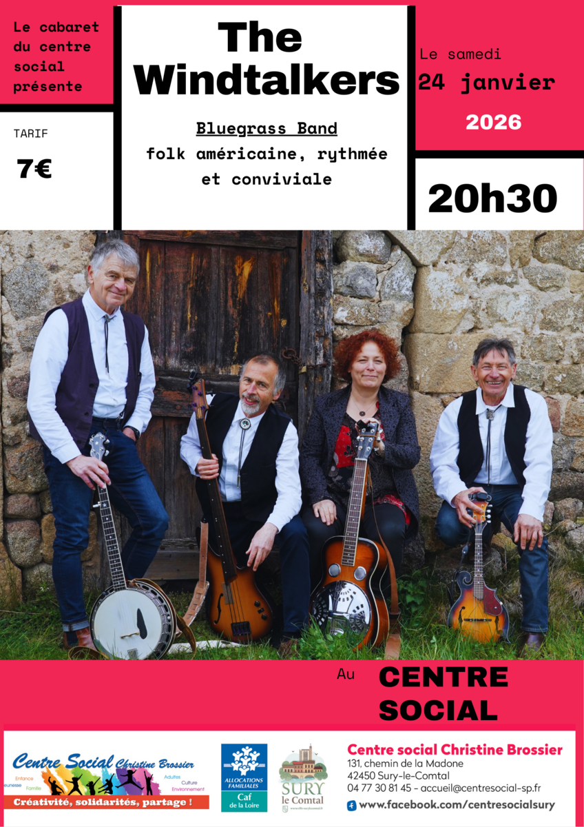 Venez passer une belle soirée musicale avec The Windtalkers, groupe de Bluegrass aux rythmes entraînants et aux harmonies chaleureuses 🎻