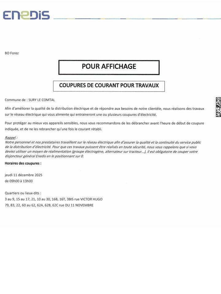 Your town hall / News / Coupure électricité ENEDIS 11 décembre 2025 - Centre Ville