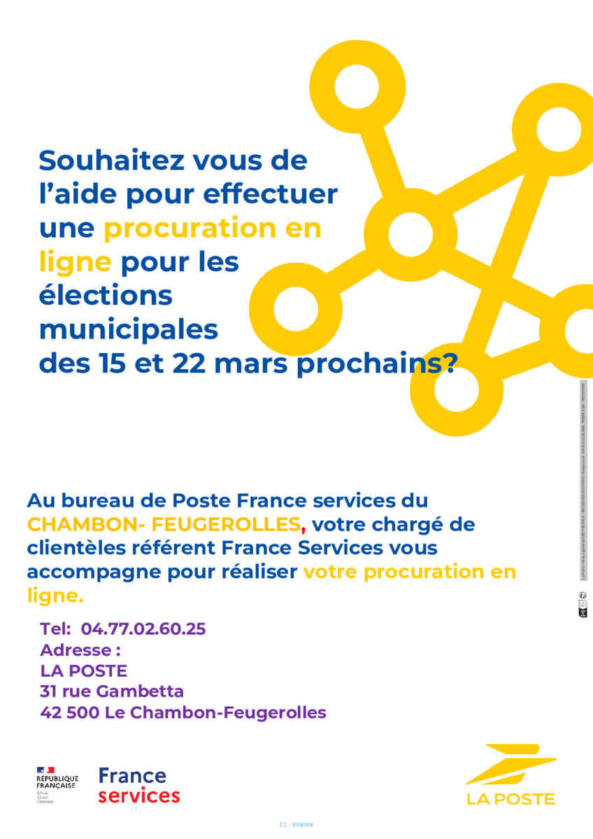 Le bureau France Services – La Poste du Chambon-Feugerolles vous accompagne pour réaliser votre démarche en ligne pour les élections municipales.