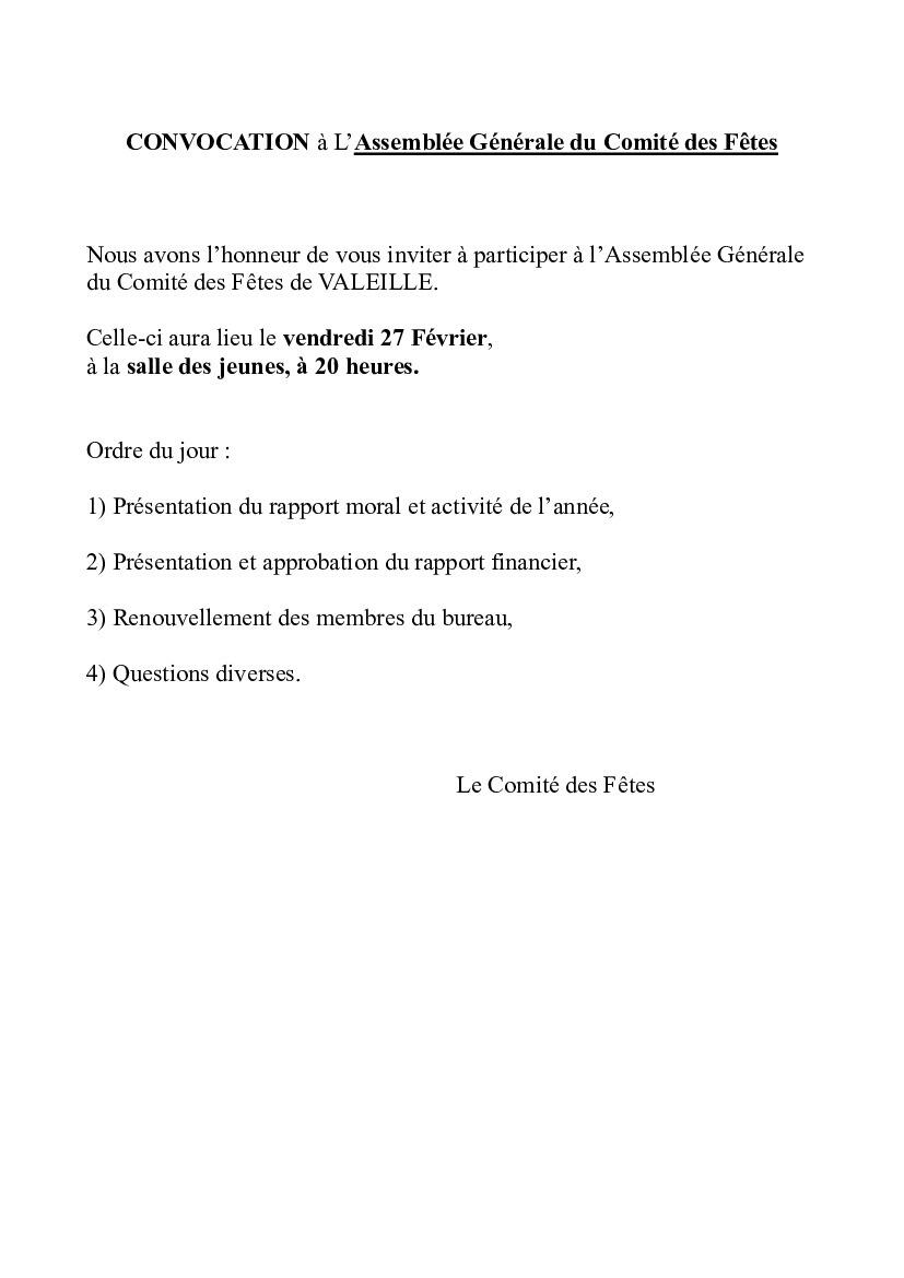 Assemblée Générale du Comité des Fêtes