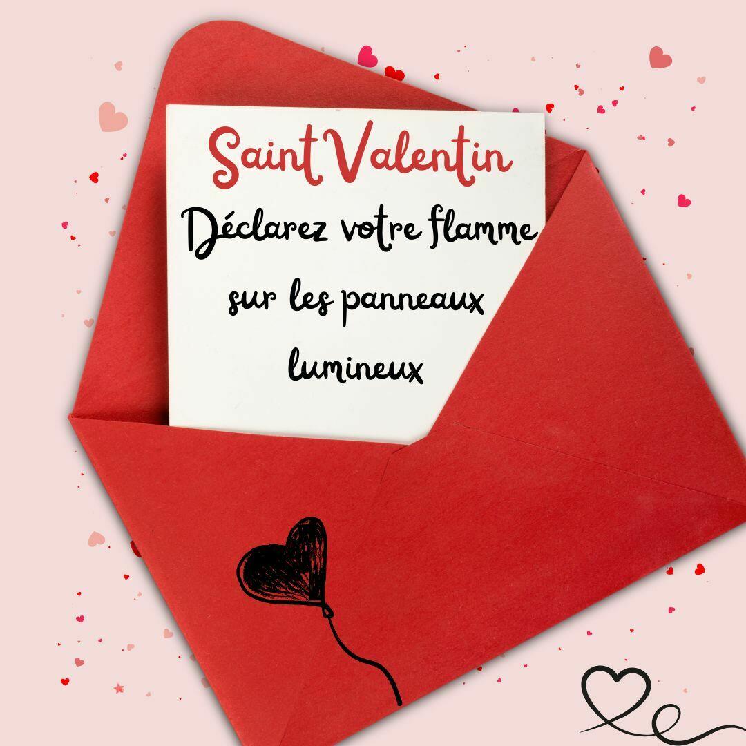 Le 14 février, c’est la Saint-Valentin. La ville de La Grand’Croix vous offre la possibilité de déclarer votre flamme sur les panneaux lumineux d’information.