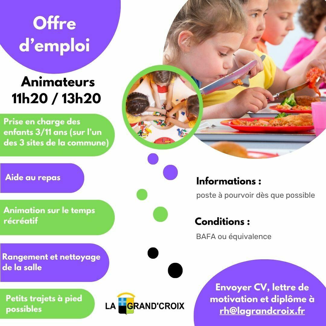 La commune recrute des animateurs sur le temps méridien jusqu’à la fin de l’année scolaire, 2 agents (11h20/13h20)