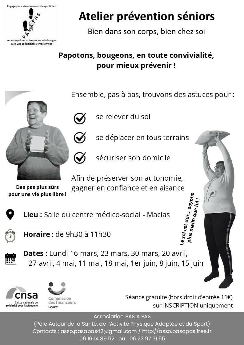 L’association PAS À PAS propose un atelier de prévention à destination des seniors à Maclas.